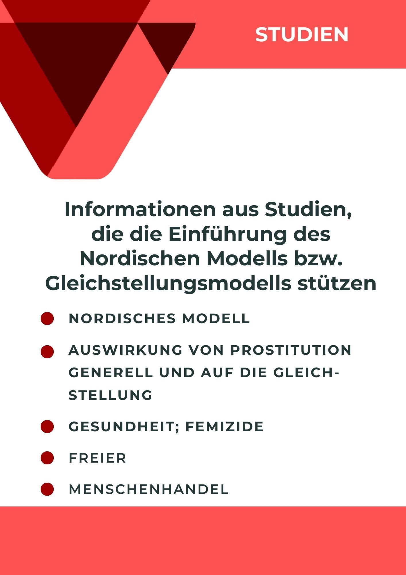 The Alliance Nordic Model is committed to a progressive prostitution policy in the sense of universal human rights in Germany, which is based on the following basic principles: